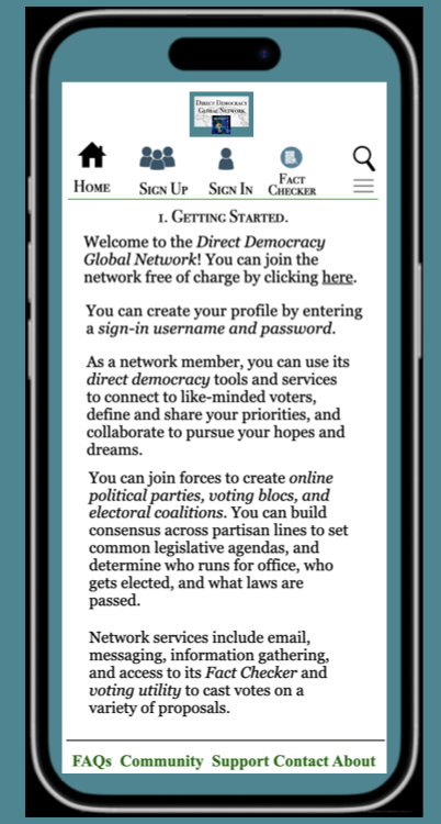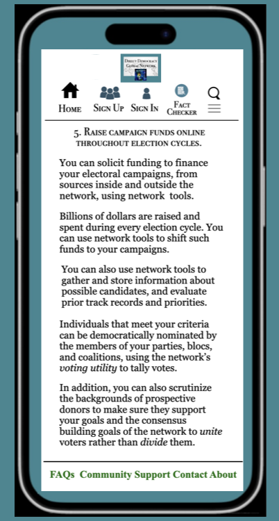 I describe in the Ten Steps section below how voters can navigate the network, and what they can accomplish.